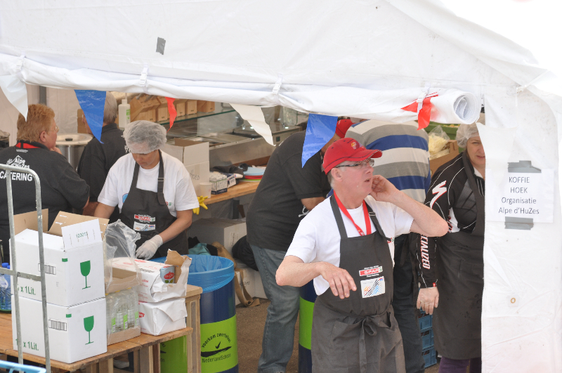 Je zou denken dat bij de zesde (ja 6) keer Alpe d’HuZes het weer hetzelfde en saai is. Nee, het is ieder jaar weer anders, andere emoties, andere belevenissen, andere mensen, andere plekken om te koken. Dit jaar heb ik ook rustiger aan gedaan om mijn voeten te sparen. Heb zelfs een keer een paar uur vrij genomen en dat kon ik doordat ik in Hendrik-Jan een prima backup had. En de vaste koks Barry en Ad en niet te vergeten Leo van het ‘steamteam’ weten precies wat ze moeten doen. In die paar uur vrij heb ik genoten van de sfeer, achterop de motor met Piet de berg af en weer op. En natuurlijk was het weer een idiote, drukke en emotionele maar zo mooie week. Ik had ook nog een leuk televisie interview, als het ik terug kan vinden zet ik het linkje hierbij. Teslotte, het weer was geweldig, bijna alleen maar zon.