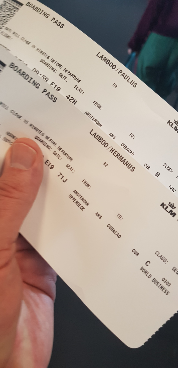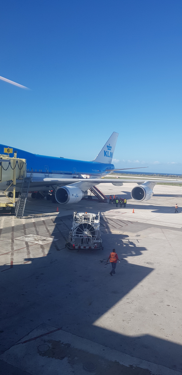 Paul wilde nog een keer 747 vliegen voordat KLM ze allemaal heeft uitgefaseerd. En wel IPB, voor een laag tarief en liefst Businessclass. Het werd ‘een biertje drinken in Paramaribo’ voor ons. Vanwege de bezetting vlogen we de heenreis op Curacao, dus daar ook een nachtje. Verder via Trinida en Tobago naar Paramaribo. Veel vliegen, veel douane, veel checks, maar erg leuk.