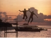 We gingen naar de Malediven om te duiken. Een klein eiland, Nakatchafuchi, in het Noord Atol, ruim 3 uur varen vanaf Male was onze thuisbasis. Het eiland is echt klein, we liepen langs de waterlijn rond het eiland en het duurde slechts 12 minuten en toen waren we weer op ons vertrekpunt! Niet meer dan 20 hutjes, een bar en een restaurant. Het duiken was werkelijk fantastisch. Het snorkelen trouwens ook. Alle soorten vissen in grote getale. Heel speciaal was een nachtduik. Ook apart was het onder water voeren van haaien. De eerste ontmoetingen met de haaien waren wel wat spannend, maar "ze doen niks". Een vervelend iets was dat we door veel in en uit het water gingen en het zout kristalliseerde in onze oren wat bij 3 van ons leidde tot een oorontsteking.